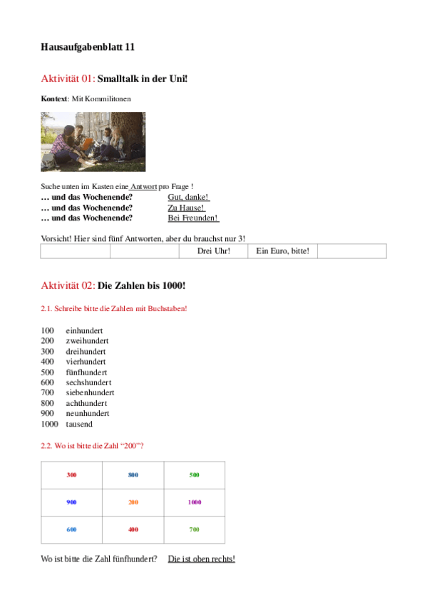 Son los ejercicios de las Hausaufgabenblatt desde la 1 hasta la 11