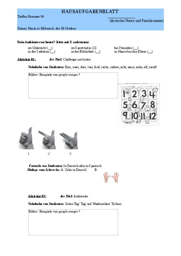 Hausaufgabenblatt
