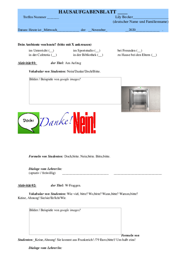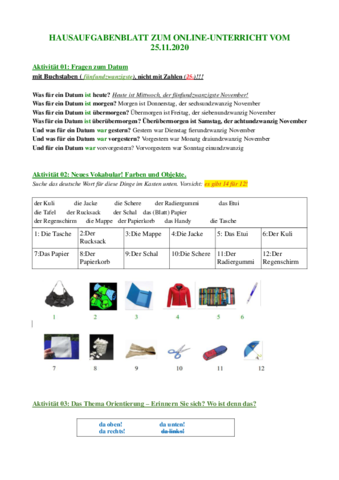 He publicado nuevos ejercicios de 2º Alemán Turístico I: Hausaufgabenblatt-25-November.docx