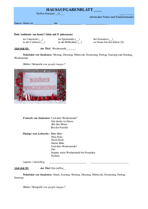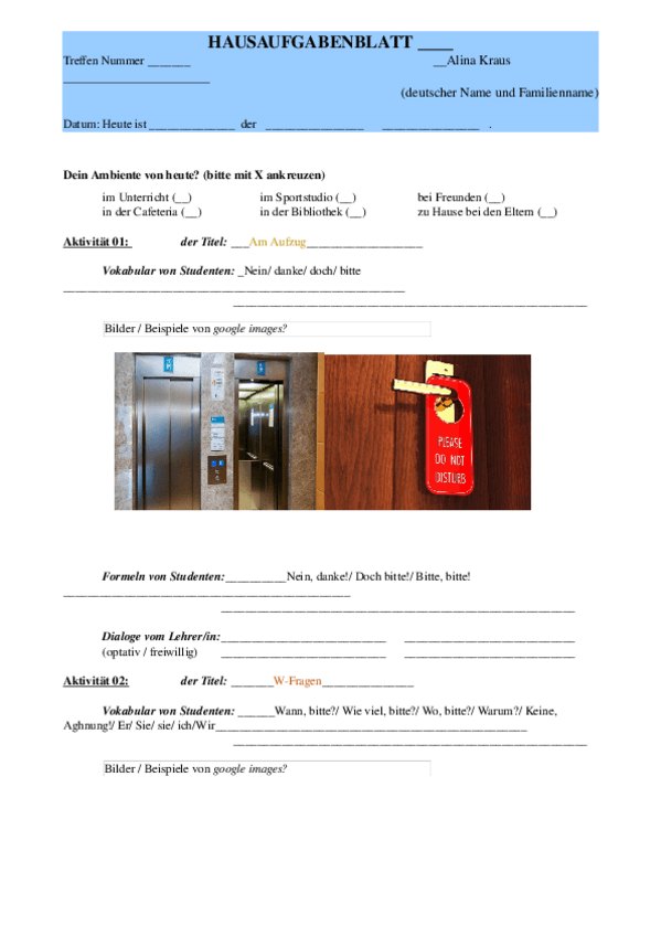 He publicado nuevos ejercicios de 2º Alemán Turístico I: Hausaufgabenblatt-6.docx