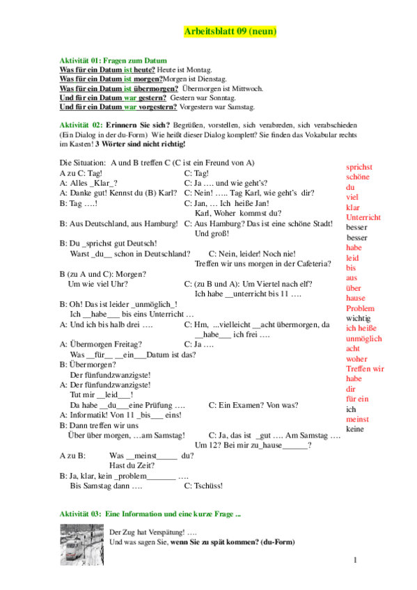 He publicado nuevos ejercicios de 2º Alemán Turístico I: ONLINE-UNTERRICHT-10-das-Arbeitsblatt.pdf
