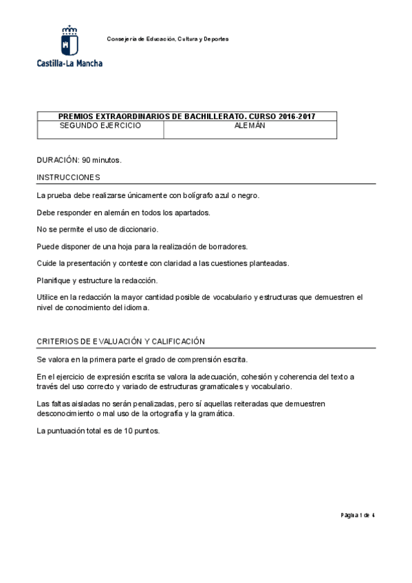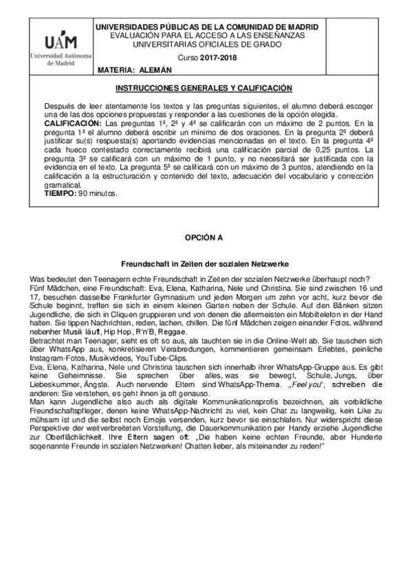 Selectividad alemán 2017-2019