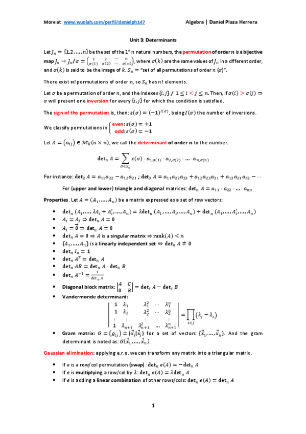 He publicado nuevos apuntes de 1º Algebra and geometry: Unit 3. Determinants.pdf