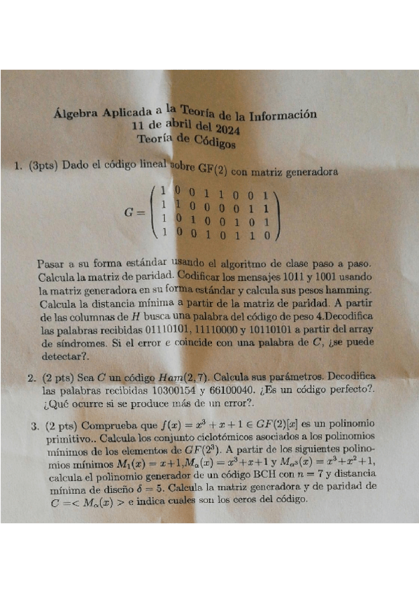He publicado nuevos examenes de 3º Álgebra aplicada en la Teoría de la Información: Primer-parcial-2024.pdf