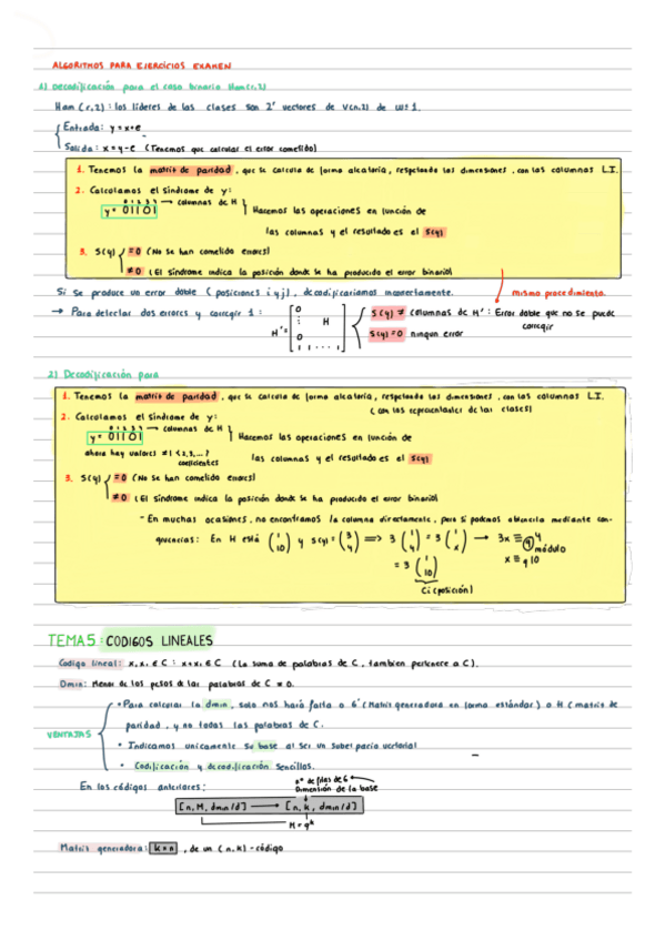 He publicado nuevos apuntes de 3º Álgebra aplicada en la Teoría de la Información: Ejercicios-Codigos-lineales.pdf