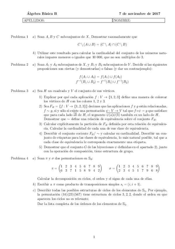 He publicado nuevos examenes de 1º Algebra Básica: Exámenes 2017-18