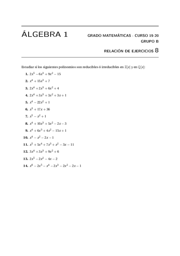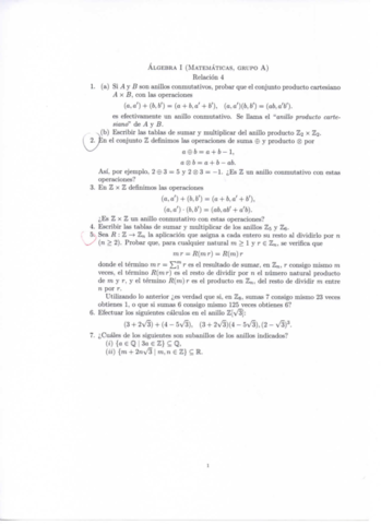 He publicado nuevos ejercicios de 1º Álgebra I: Relaciones de ejercicios