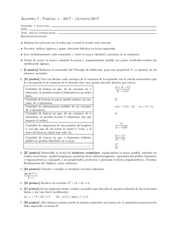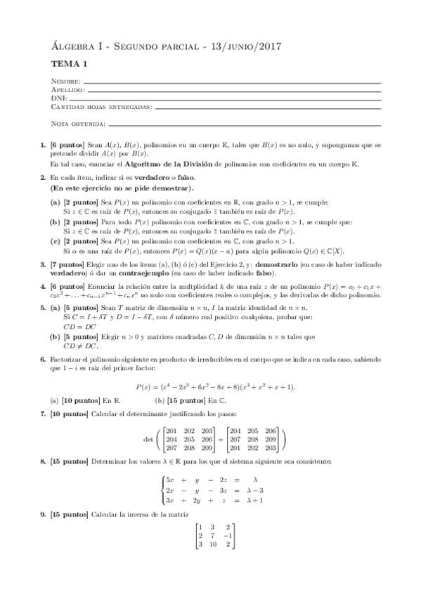 He publicado nuevos examenes de 1º Álgebra I: Recuperatorio-2017-Tema-1.pdf