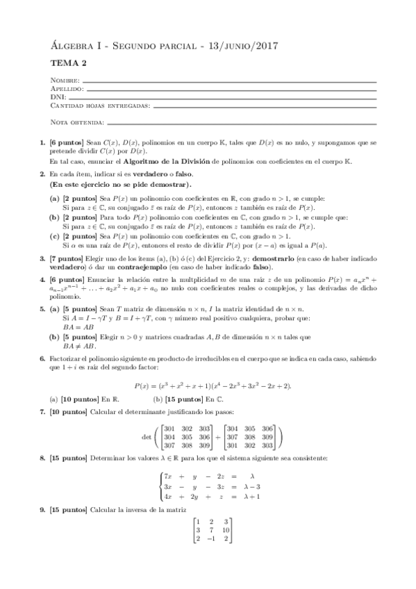 He publicado nuevos examenes de 1º Álgebra I: Recuperatorio-2017-Tema-2.pdf