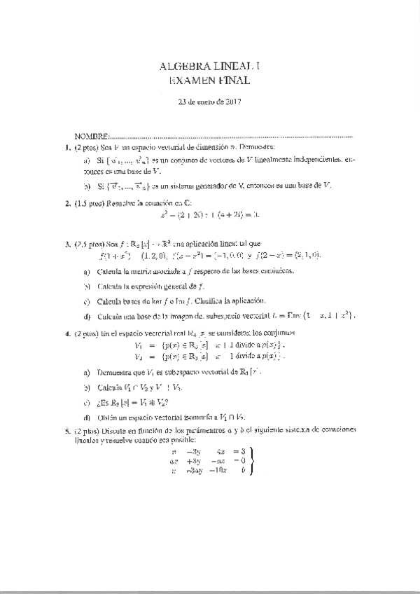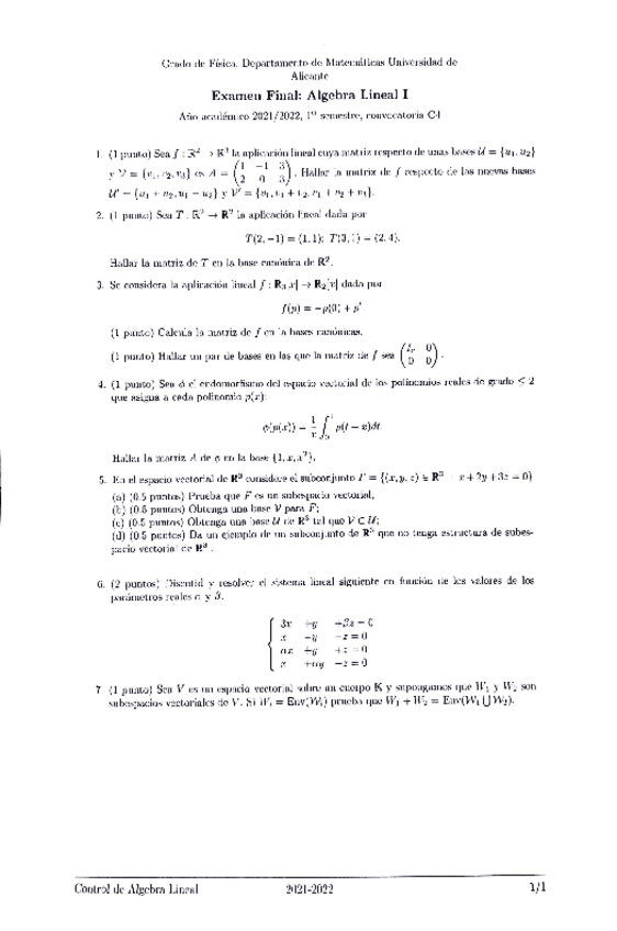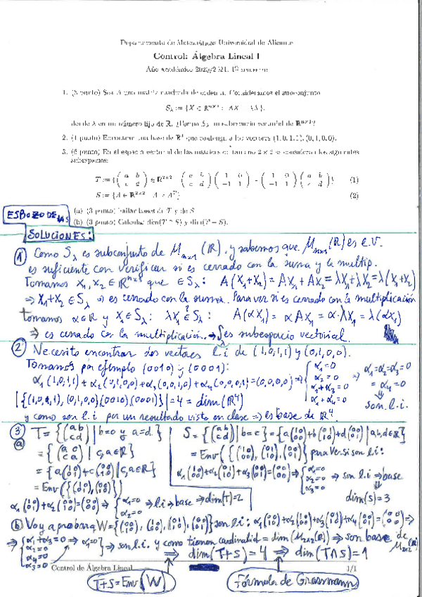 Exámenes Álgebra Lineal I