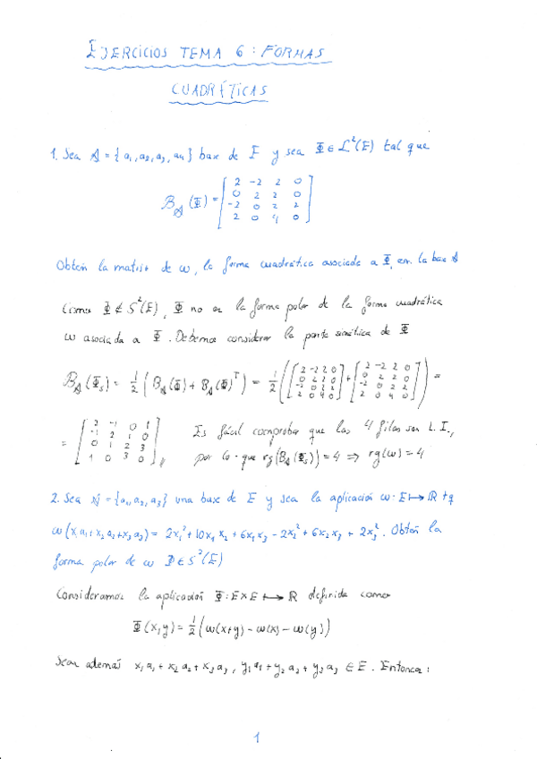 He publicado nuevos ejercicios de 1º Álgebra Lineal II: Tema 6: Formas cuadráticas