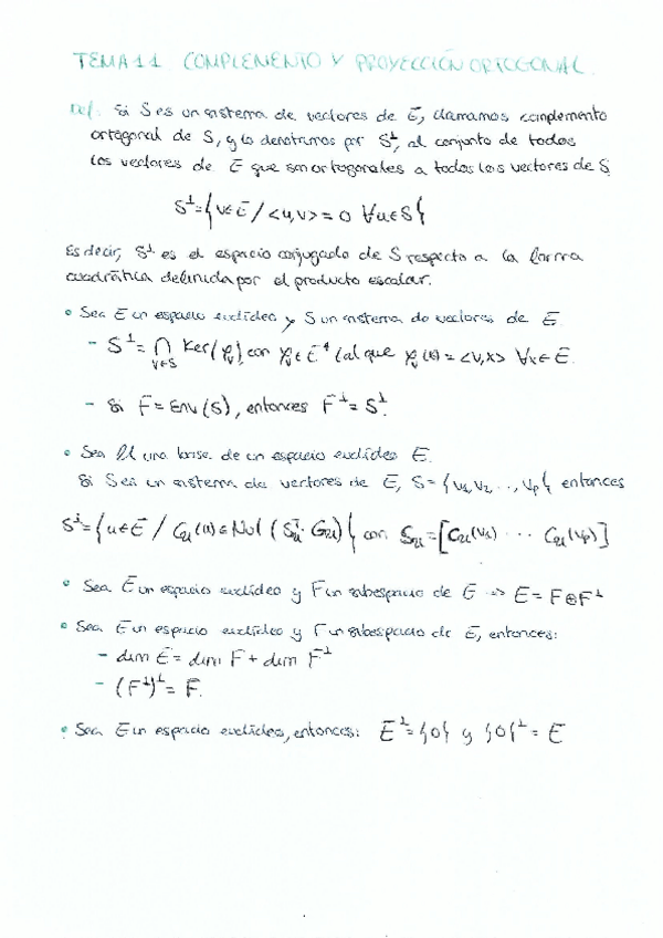 Tema 10: Complemento y proyección ortogonal