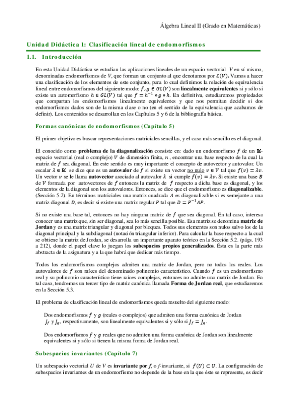 He publicado nuevos apuntes de 1º Álgebra Lineal II: SUBESPACIOS INVARIANTES.pdf