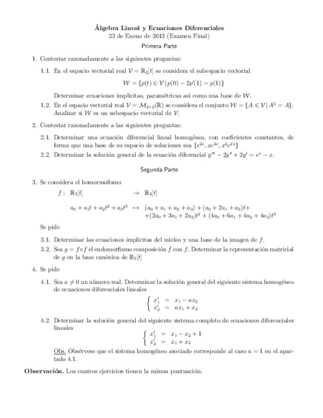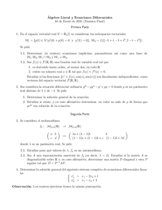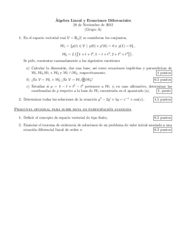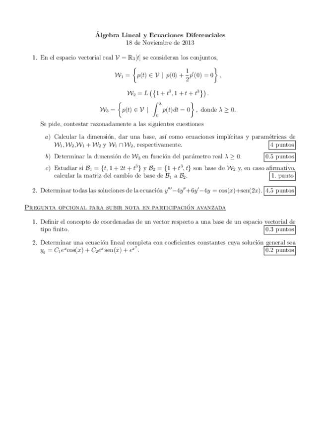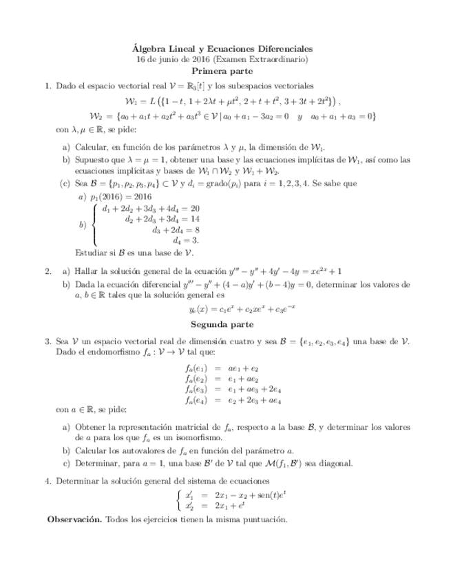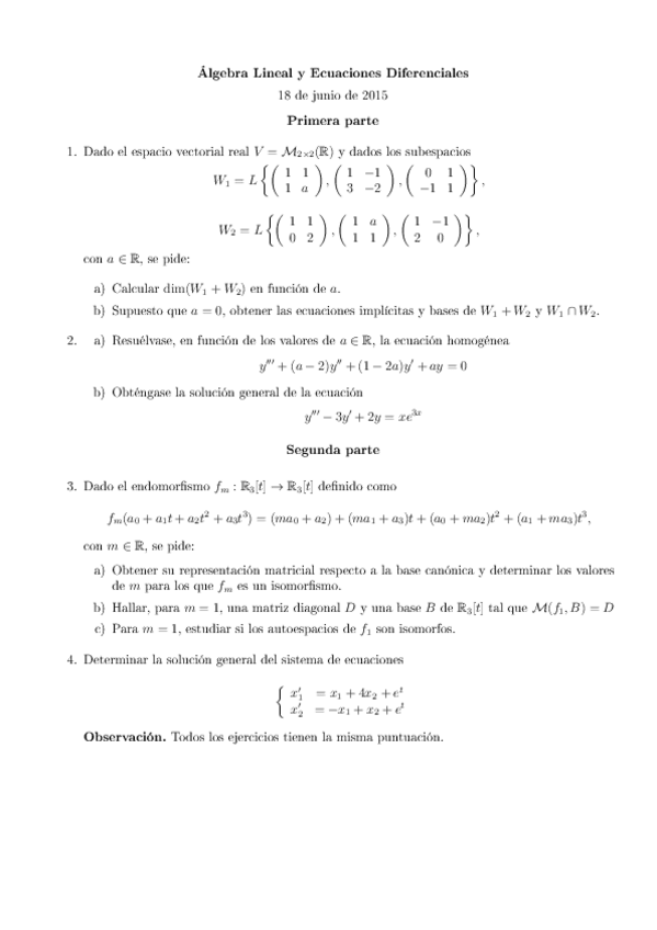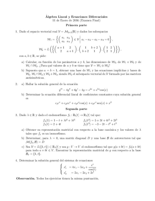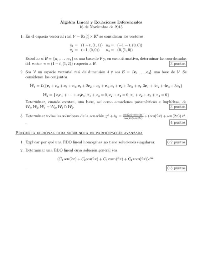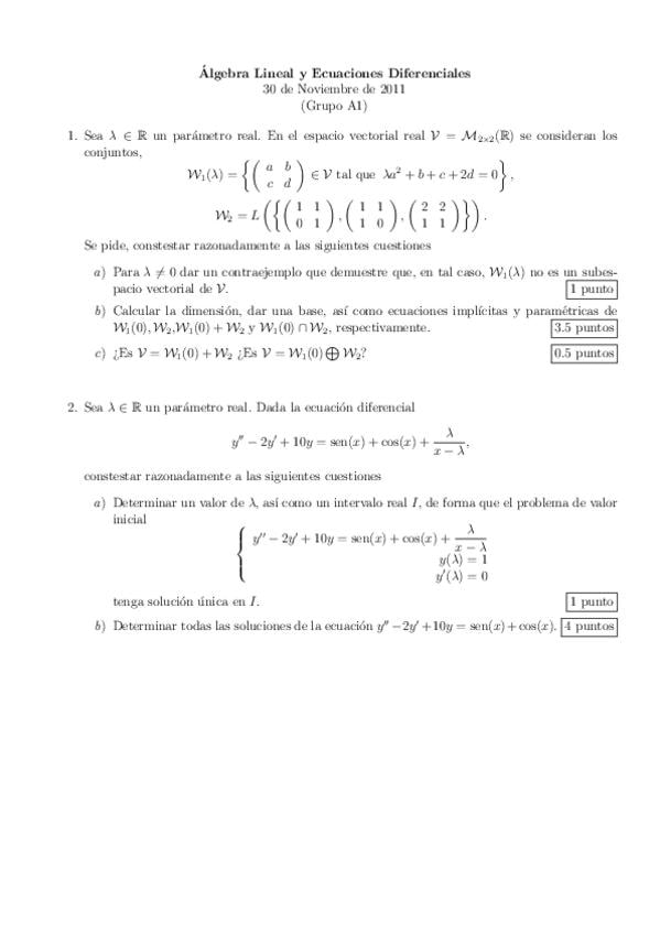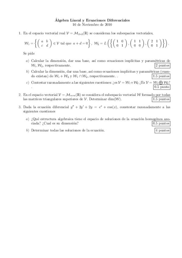 Exámenes Álgebra y ecuaciones