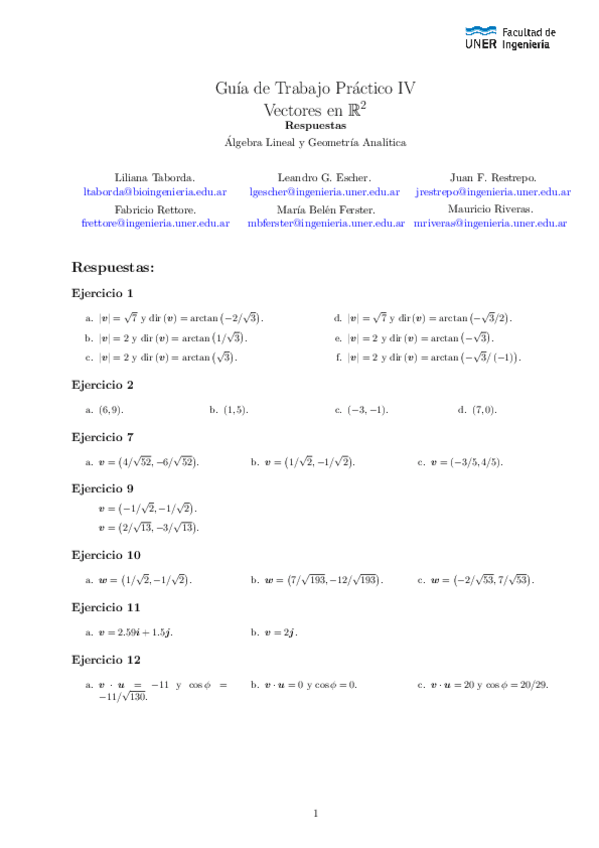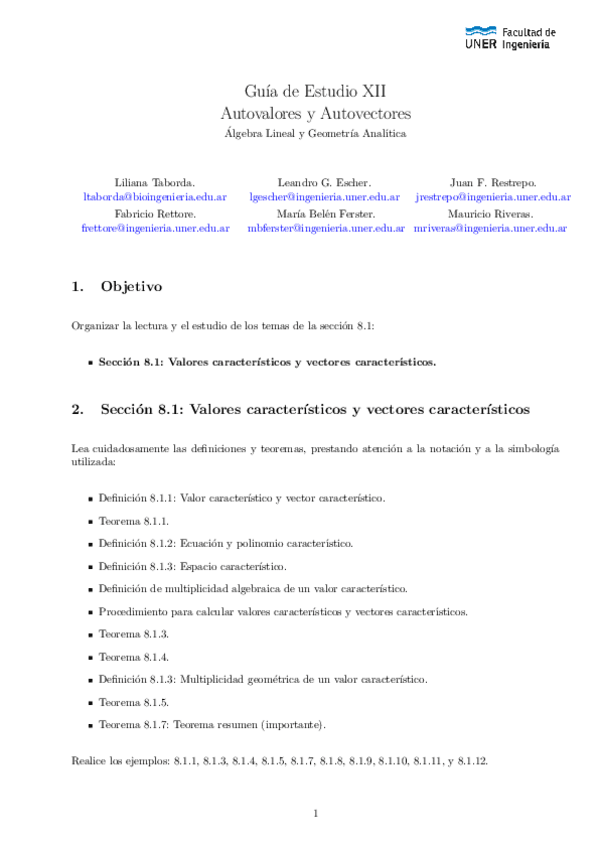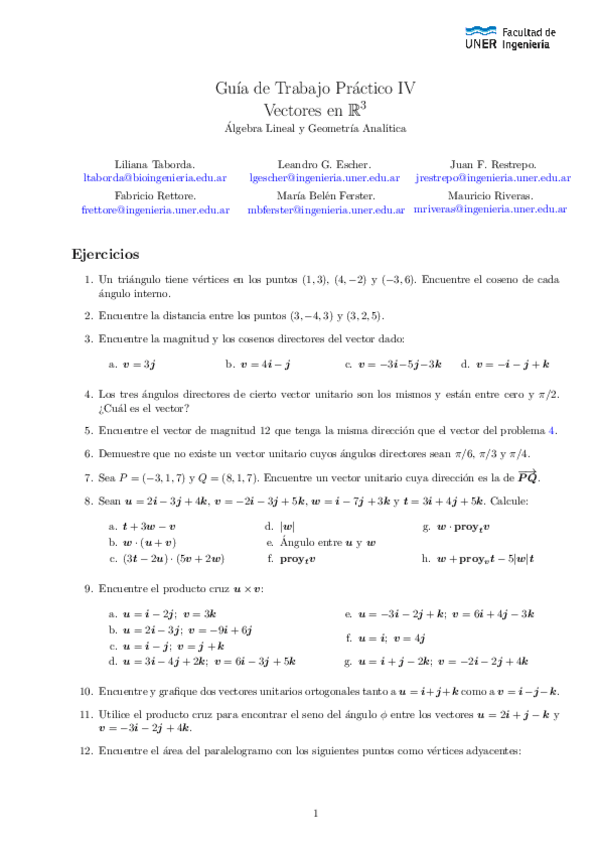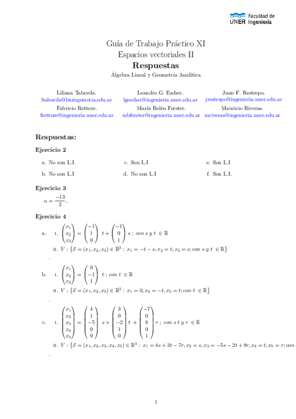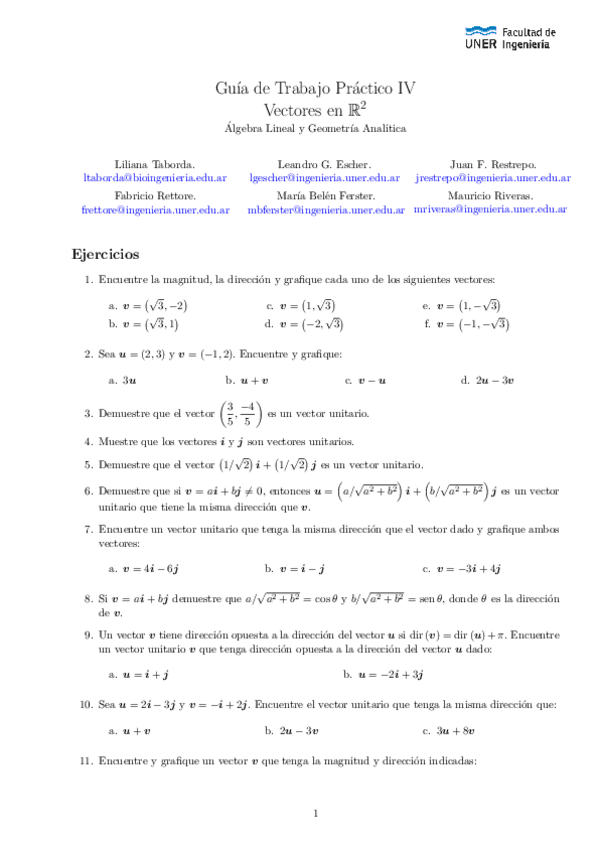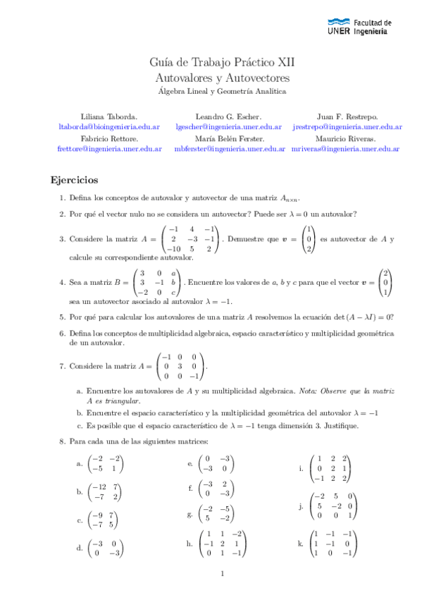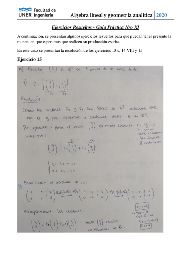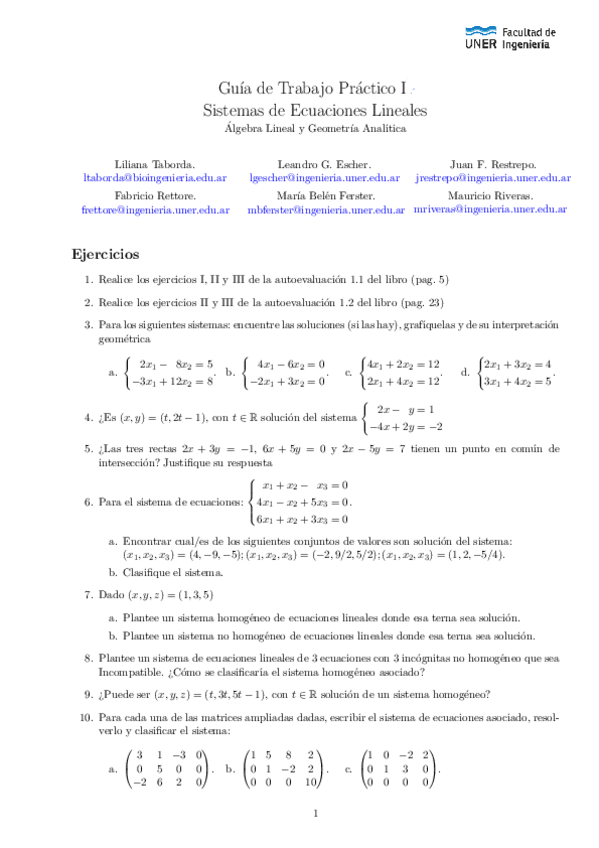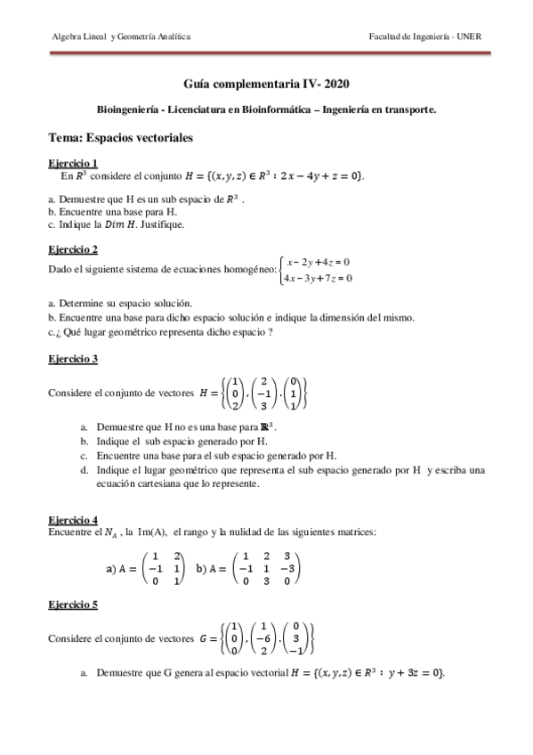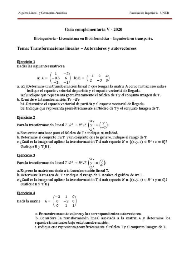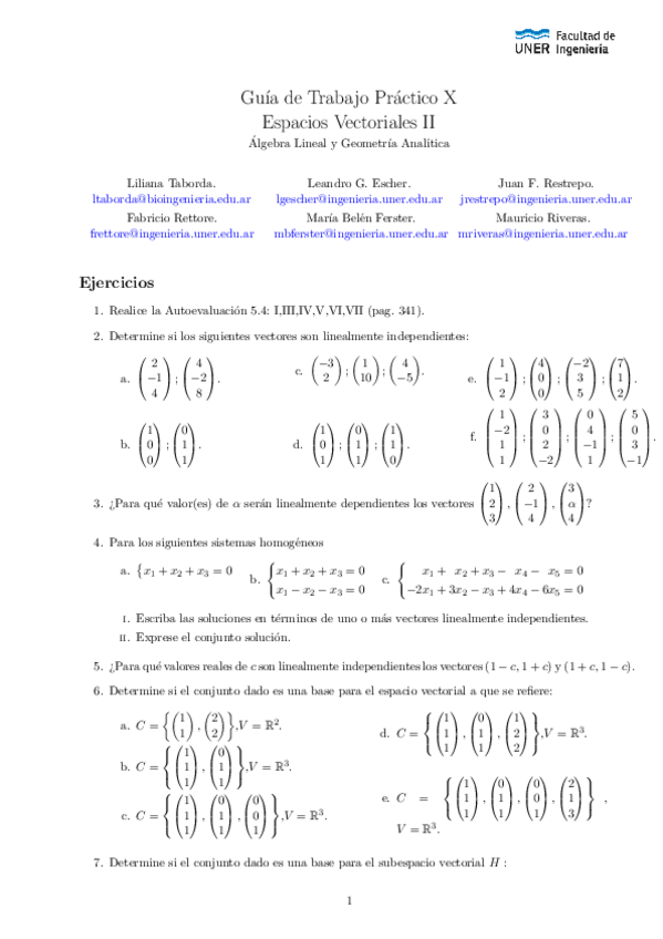 He publicado nuevos ejercicios de 1º Álgebra Lineal y Geometría Analítica: Guías Complementarias