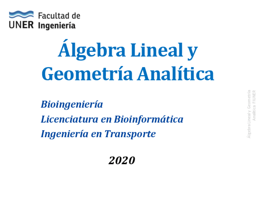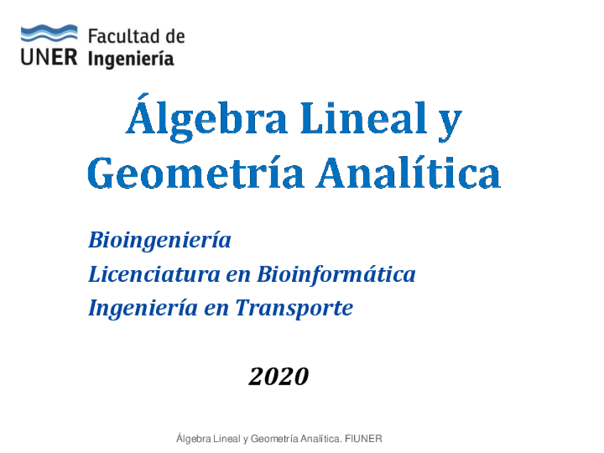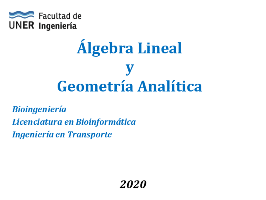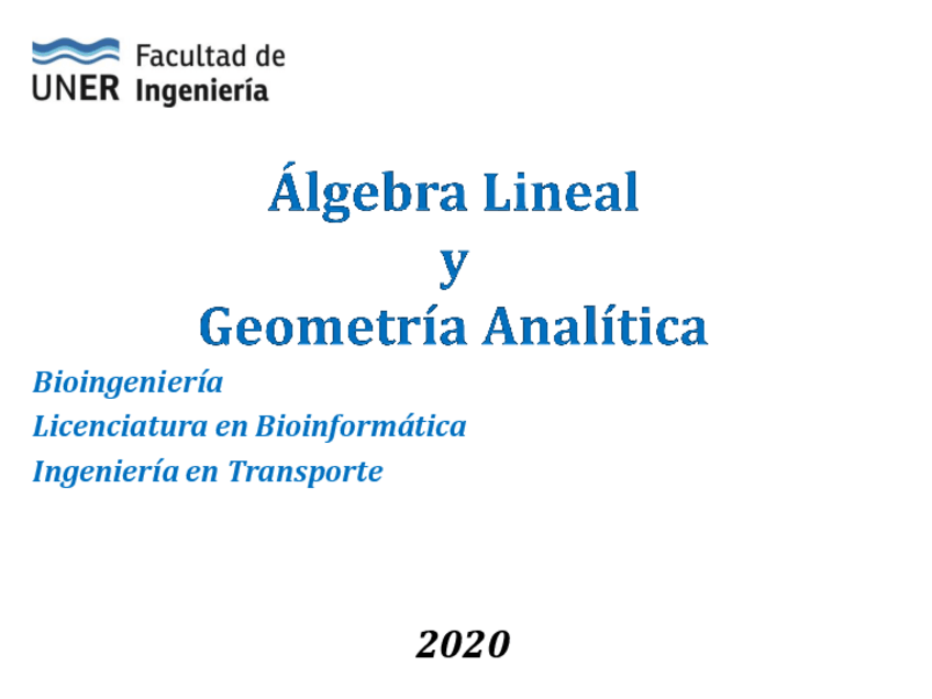 Álgebra Lineal y Geometría Analítica