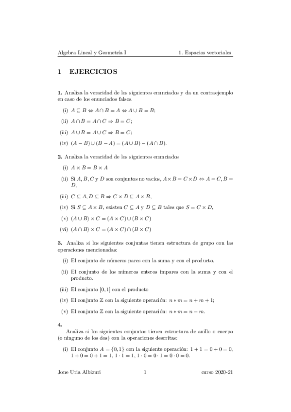 Aljebra Lineala eta Geometria I 1. lauhilekoa
