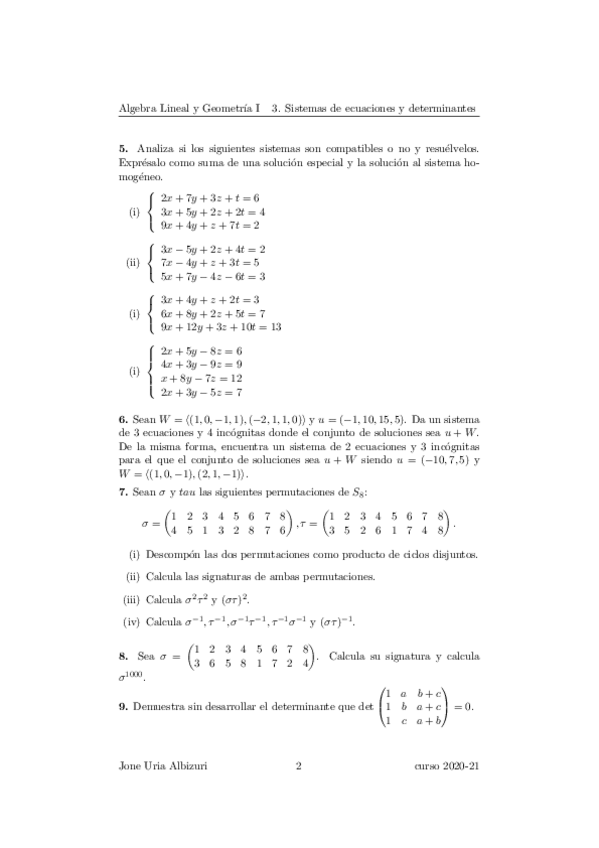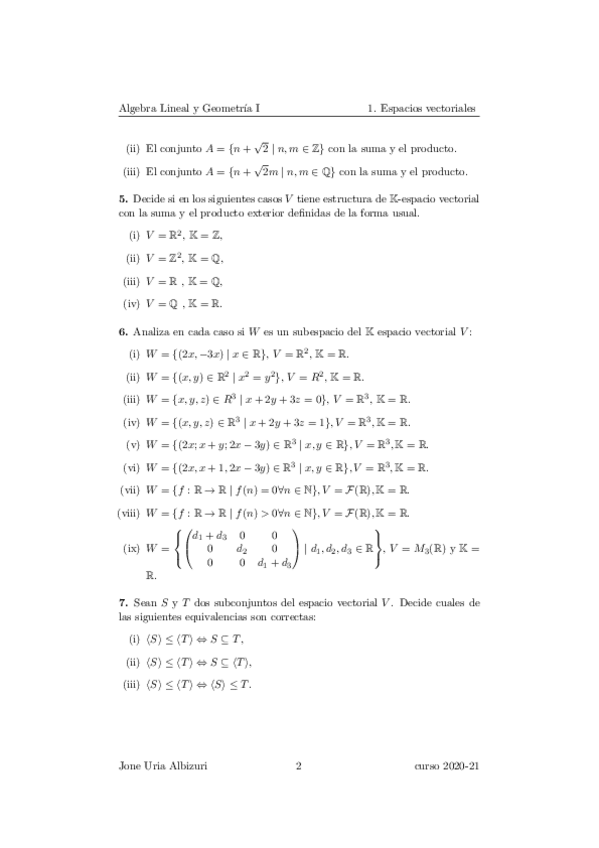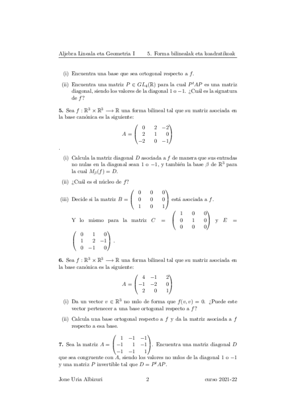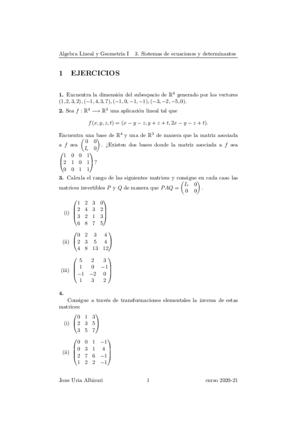 He publicado nuevos ejercicios de 1º Álgebra Lineal y Geometría I: Aljebra Lineala eta Geometria I 1. lauhilekoa