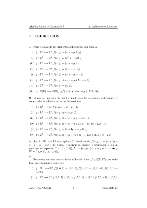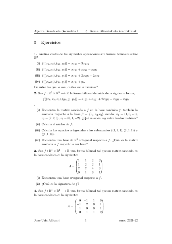 He publicado nuevos ejercicios de 1º Álgebra Lineal y Geometría I: Aljebra Lineala eta Geometria I 2. lauhilekoa