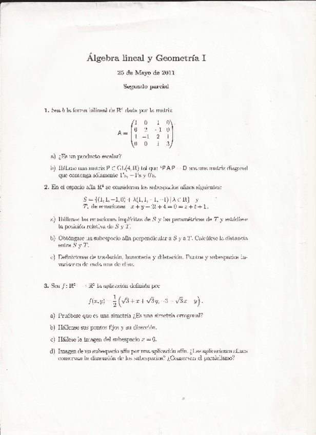 He publicado nuevos examenes de 1º Álgebra Lineal y Geometría I: EXAMEN-Algebramayo2011.pdf