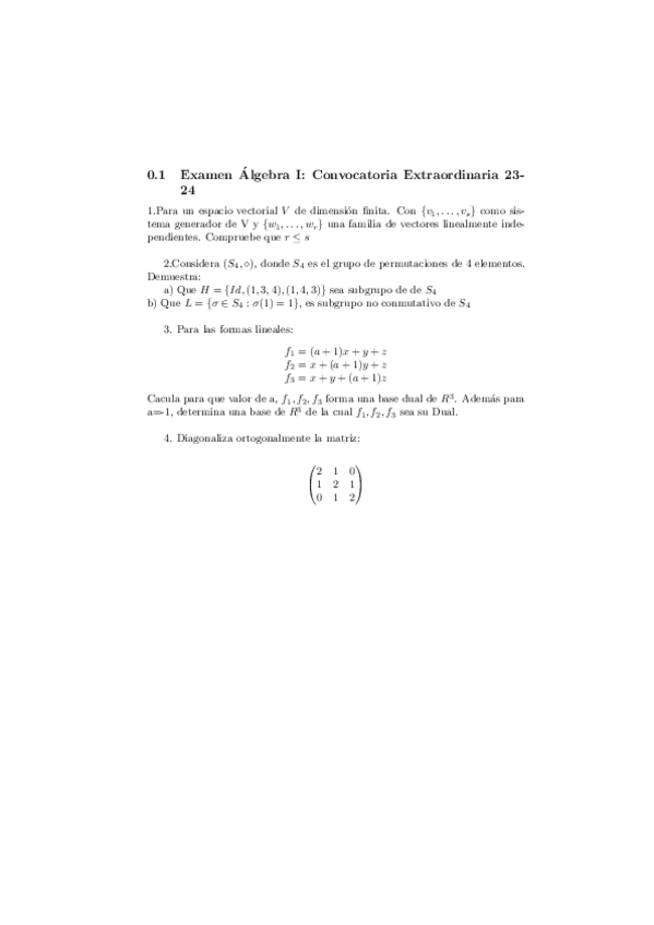 He publicado nuevos examenes de 1º Álgebra Lineal y Geometría I: ExamenAlgebraIConvocatoriaExtraordinaria2324.pdf