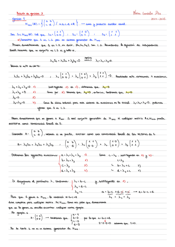 He publicado nuevos ejercicios de 1º Álgebra Lineal y Geometría I: Boletines resueltos 24/25