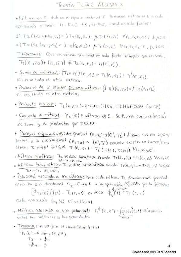 Parte de teoría del examen final de convocatoria ordinaria de algebra 2 del curso 24-25