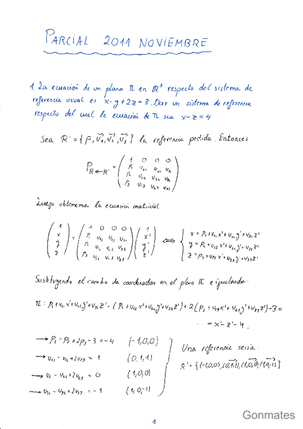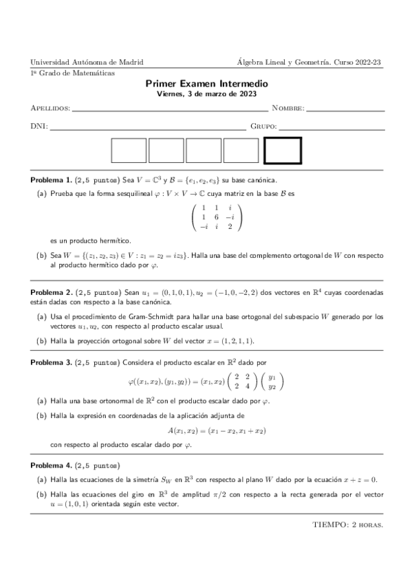 Primer parcial con soluciones curso 2024-25 Álgebra lineal y geometría