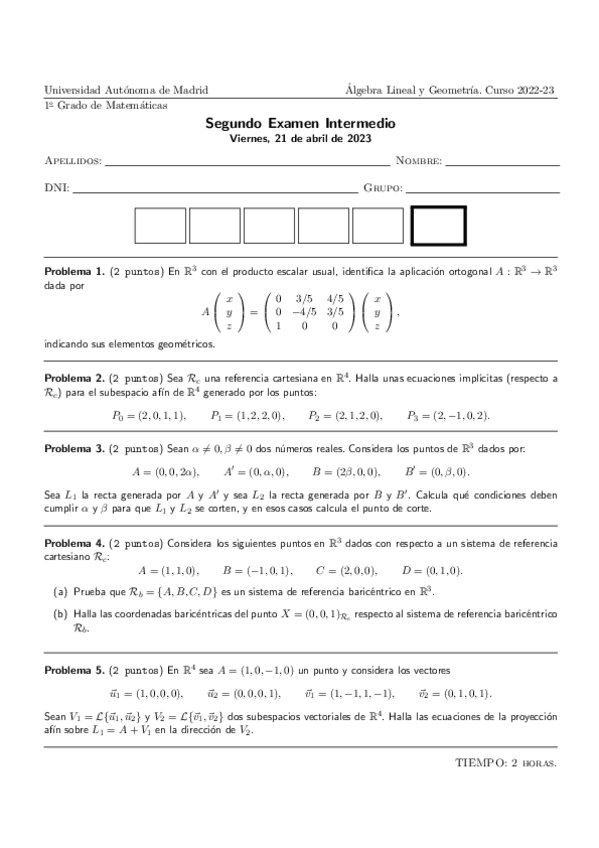 He publicado nuevos ejercicios de 1º Álgebra Lineal y Geometría: Hojas_resueltas_alg2_22/23
