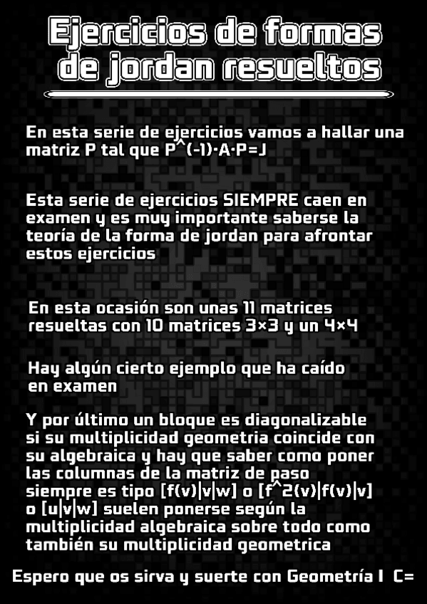 He publicado nuevos ejercicios de 1º Álgebra Lineal y Geometría: EJERCICIOS-DE-HALLAR-FORMA-DE-JORDAN-Y-MATRIZ-DE-PASO.pdf