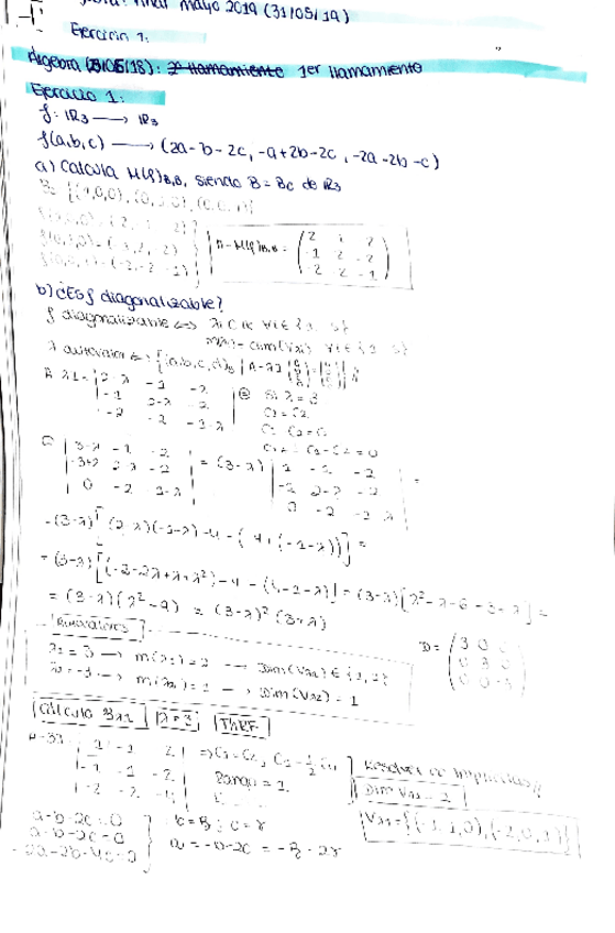 He publicado nuevos examenes de 1º Álgebra Lineal y Geometría: FINAL-Mayo-2019-resuelto.pdf