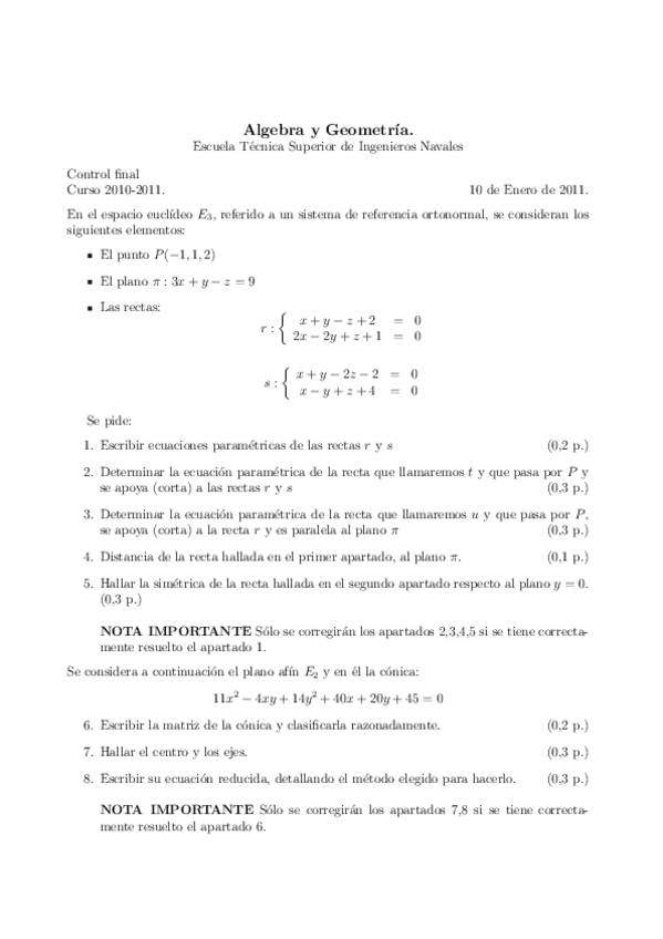 He publicado nuevos examenes de 1º Álgebra Lineal y Geometría: Álgebra Lineal y Geometría