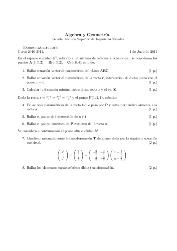 Álgebra Lineal y Geometría