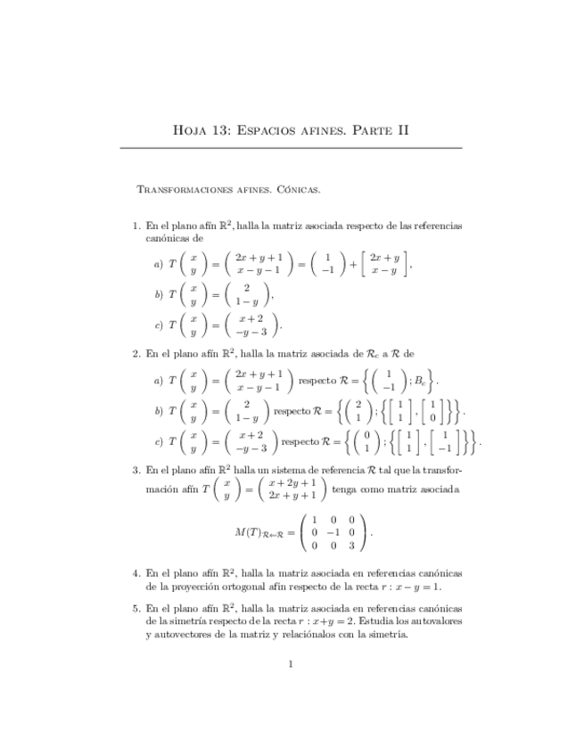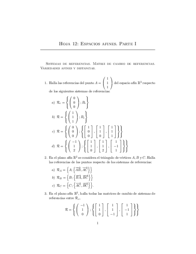 He publicado nuevos apuntes de 1º Álgebra Lineal y Matemática Discreta: Relacion-12-Espacios-afines.-Parte-I.pdf