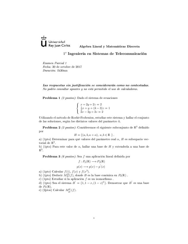He publicado nuevos examenes de 1º Álgebra Lineal y Matemática Discreta: Solucion-parcial-1.pdf
