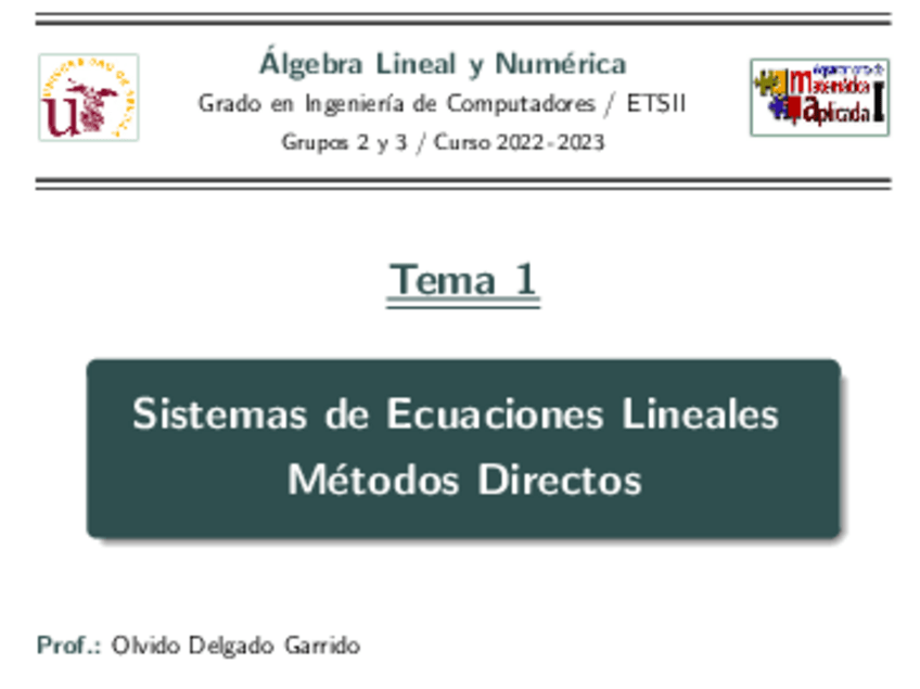 He publicado nuevos apuntes de 1º Álgebra Lineal y Numérica: Tema-1-Sistemas-de-ecuaciones-lineales.-Metodos-directos.pdf