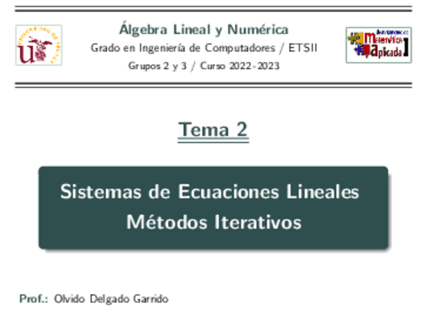 He publicado nuevos apuntes de 1º Álgebra Lineal y Numérica: Tema-2-Sistemas-de-ecuaciones-lineales.-Metodos-iterativos.pdf