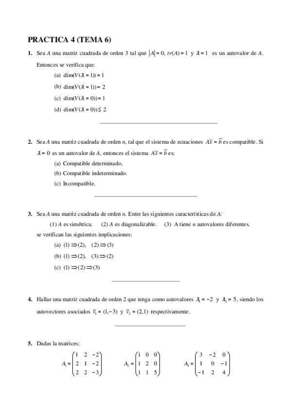 Ejercicios practicas y examenes algebra