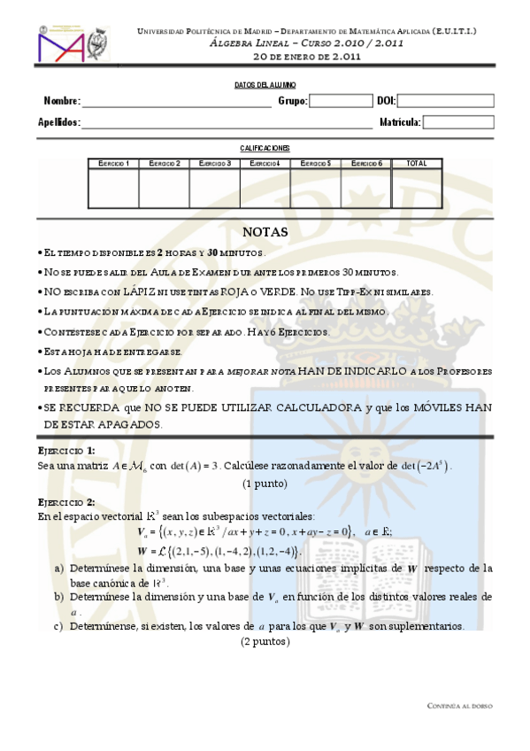 Exámenes Algebra