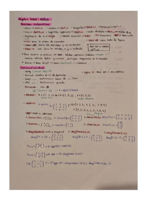 Comandos de matlab necesarios para Algebra lineal