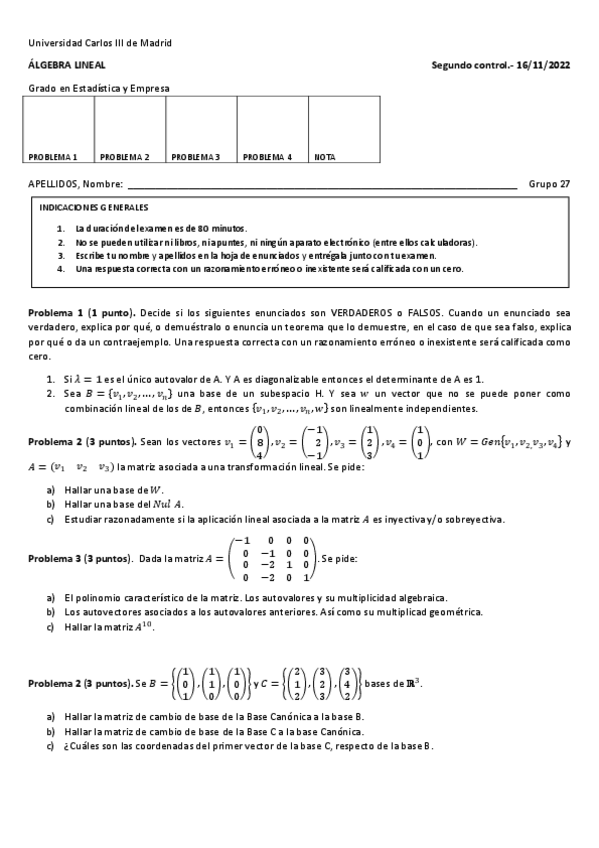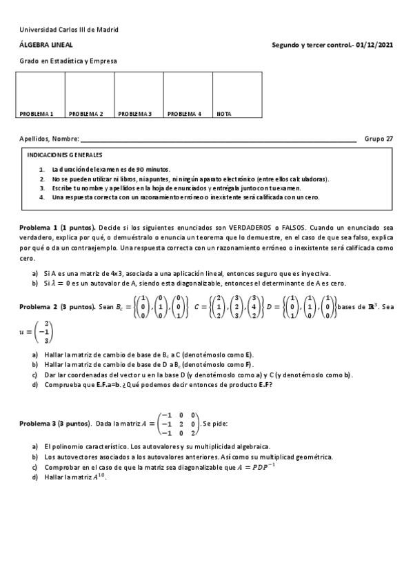 He publicado nuevos examenes de 1º Álgebra Lineal: Control-2y3-G27-21-22.pdf
