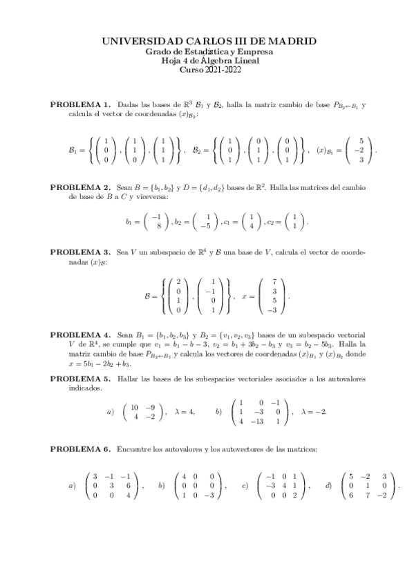 He publicado nuevos ejercicios de 1º Álgebra Lineal: HOJA-4.-ALGEBRA-LINEAL.pdf