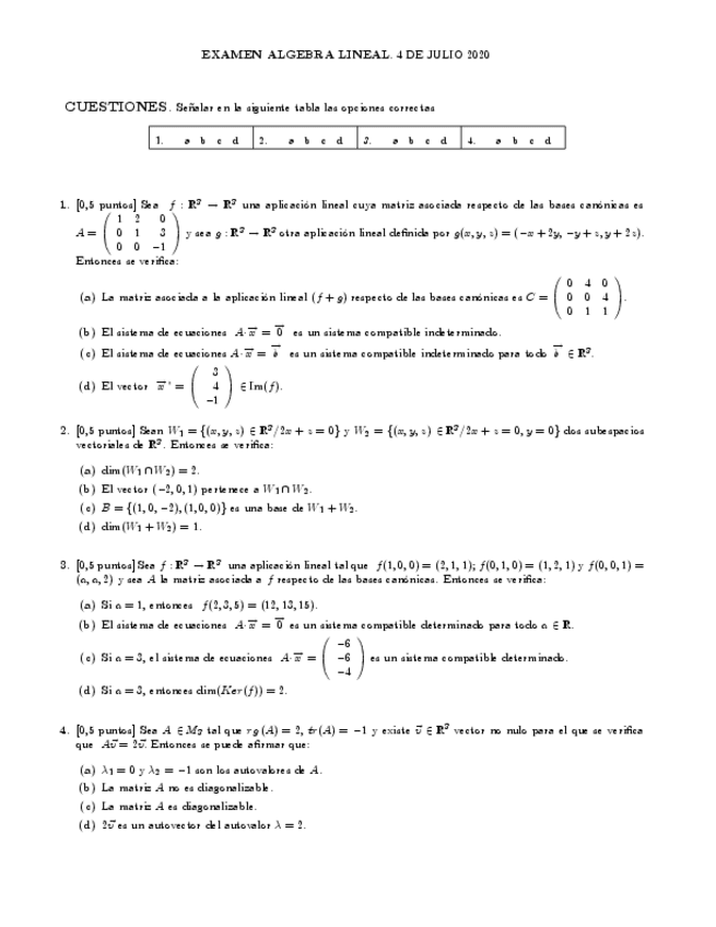 He publicado nuevos examenes de 1º Álgebra Lineal: EXAMEN FINAL 2020 ÁLGEBRA.pdf
