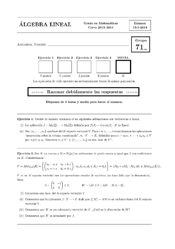 He publicado nuevos examenes de 1º Álgebra Lineal: EXAMEN-FINAL-2022-ALGEBRA.pdf