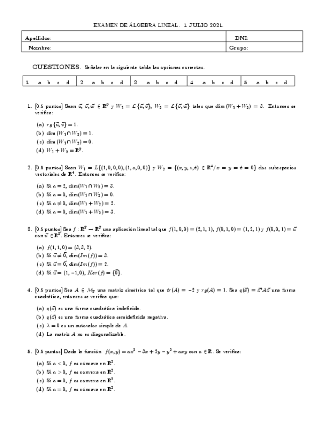 He publicado nuevos examenes de 1º Álgebra Lineal: EXAMEN JULIO 2021