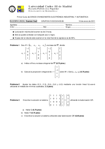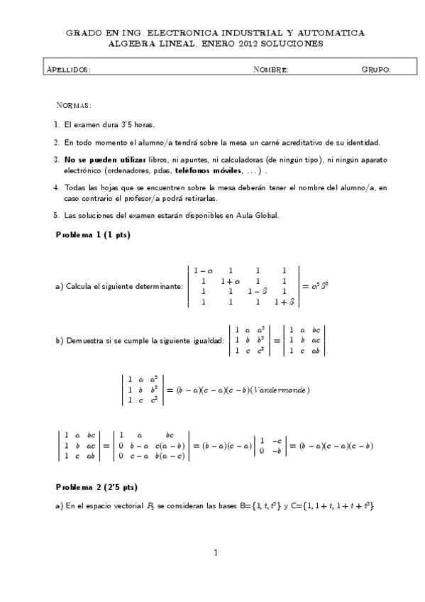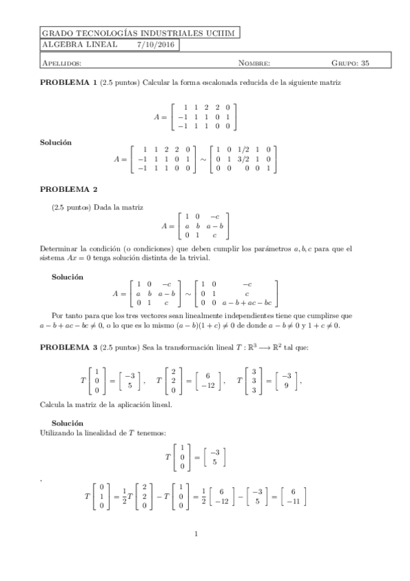 EXÁMENES RESUELTOS ÁLGEBRA LINEAL