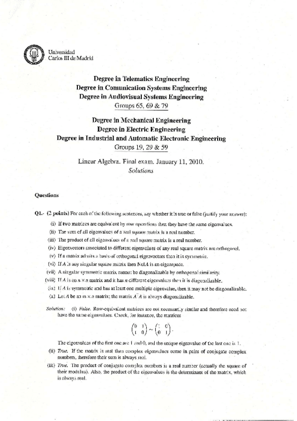 He publicado nuevos examenes de 1º Álgebra Lineal: Resumenes y ejercicios de toda la asignatura Spoc