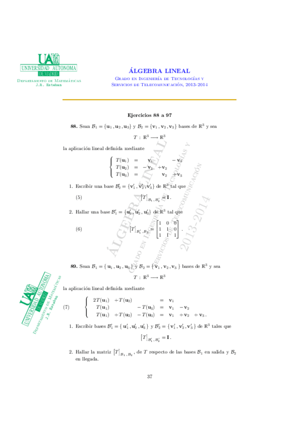 He publicado nuevos apuntes de 1º Álgebra Lineal: Listas de Problemas Para Estudiar Parte2