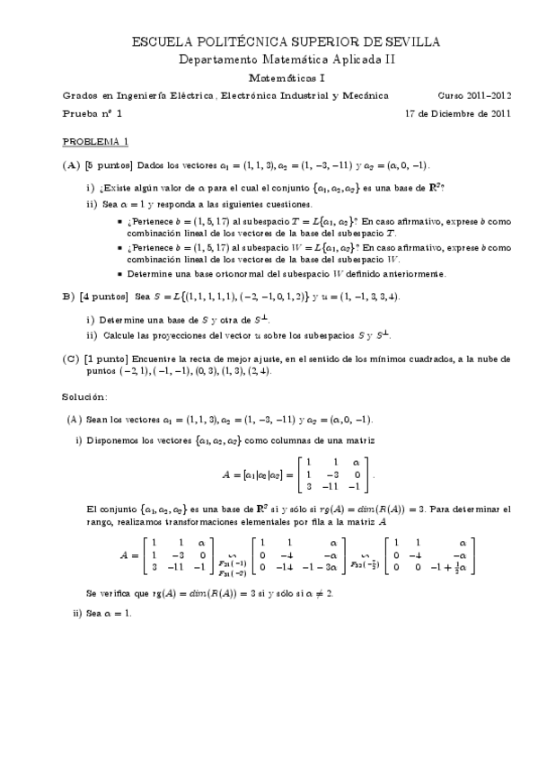 He publicado nuevos examenes de 1º Álgebra Lineal: Solucion Examenes del Curso 14-15