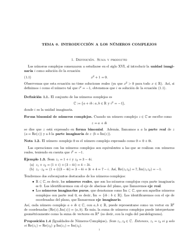 Tema 0 : Números Complejos